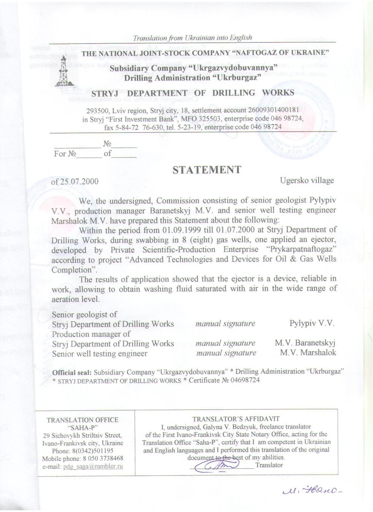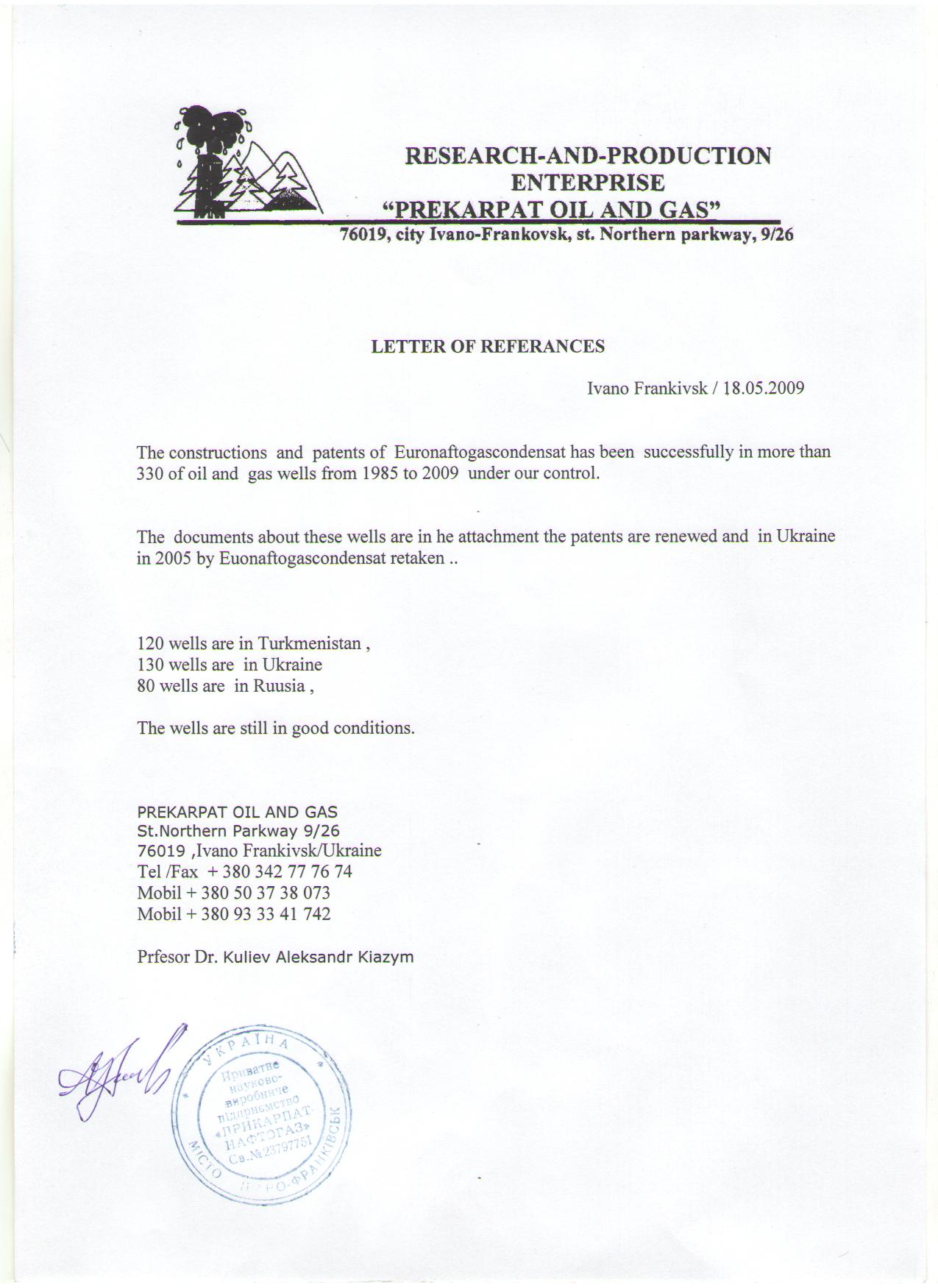 The constructions and patents of Euronaftogascondensat has been successfully in more than 330 of oil and gas wells from 1985 to 2009 under our control.